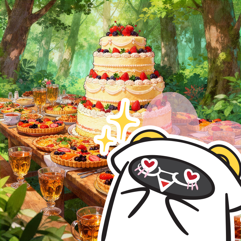 美食祭典的餐桌盡是大樹村出產的美酒佳餚;散發誘人果香的水果塔、加入蜂蜜的私釀酒、只有大樹村才有的野味豬肉鍋等,這些通通黑羊都看不上眼,只有吸血鬼、天使及鬼人女僕秘密合力製作,聽說比人還要高的超巨大三層蛋糕才是牠的真正目標。